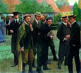 In 1899, Siebelist created such a school and began holding classes en plein aire. His first students included Friedrich Ahlers-Hestermann, Franz Nölken, Fritz Friedrichs and Walter Alfred Rosam. His school received support from Ernst Rump, a wealthy businessman and art collector.[1] In 1902, he painted what is probably his most familiar work "My Students and I".