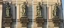 Four allegories (Architecture, Sculpture, Painting, Engraving) on the facade of "Arti et Amicitiae", Rokin, Amsterdam.[6]