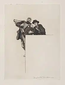 An artist's proof is an impression of a print taken in the printmaking process to see the current printing state of a plate while the plate (or stone, or woodblock) is being worked on by the artist.[1] A proof may show a clearly incomplete image, often called a working proof or trial impression, but in modern practice is usually used to describe an impression of the finished work that is identical to the numbered copies.[2] There can also be printer's proofs which are taken for the printer to see how the image is printing, or are final impressions the printer is allowed to keep.[3]