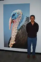 Beltrán with painting at the Fábrica de Artes y Oficios Oriente in Mexico City