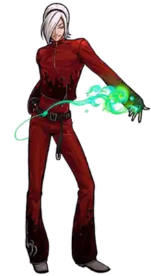 Introduced in The King of Fighters 2003, Ash leads the New Hero Team of Duo Lon and Shen Woo which participates in a new King of Fighters tournament.[2] After the tournament, he ambushes host Chizuru Kagura and steals her powers, telling Iori Yagami he will be his next opponent.[3] In The King of Fighters XI, the character teams up with Oswald and Shen Woo.[4] At the game's end Ash leaves his teammates to fight each other, after disclosing that Oswald's price for joining him was finding a drug he can only obtain after defeating their pharmacist's enemy, their own teammate Shen.[5] He later finds a berserker, Iori, defeats him and steals his powers.[6] When Ash's comrade Elisabeth Blanctorche accuses him of abandoning his original mission and becoming obsessed with power, he leaves after saying that Kyo Kusanagi will be his next victim.[7] Ash also appears as an available fighter in the KOF: Maximum Impact 2's update KOF Maximum Impact Regulation A and The King of Fighters XII, games without a storyline.[8][9]