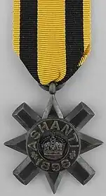 The Ashanti Star was created in 1896 for the members of the expedition against the Ashanti King Prempeh, in the Fourth Anglo-Ashanti War[2] that lasted from December 1895 to February 1896.[3]