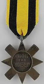Reverse: within a circular central recess the inscription "From the Queen", the rest of the reverse surface is plain.