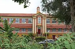The new Ashgrove State School building (Block A) was opened by the Minister for Health and Home Affairs, Ned Hanlon on 19 March 1938.[44][52][53][54] The two storey brick school, plus undercroft, was planned to be built in stages. Phase one of the brick school, costing £6,884, included four classrooms 19 by 21 feet (5.8 by 6.4 m) and a cloak room on each floor to accommodate 360 pupils, with the undercroft housing an office for the head teacher, large play area, drinking troughs and seats. It did not include the entrance foyer. The classrooms were connected by folding partitions, which could open to provide assembly areas. The building was roofed in terracotta Marseilles tiles. The future remaining portions were planned to accommodate 880 pupils, with the intention of completing the original plan of an E-shape form facing Glory Street. The building was not completed to the 1936 plan, with the eastern end only having a one-storey (understorey) section and the western end later being built to a similar, but not matching, plan.[55][56][57][1]