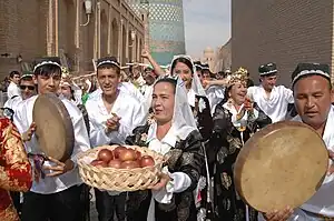"Asrlar Sadosi" (English: "Echo of Centuries") is a festival of traditional Uzbek culture which attracts tens of thousands of local and overseas tourists every year and presents all the diversity of the national traditions and customs, handicrafts and cuisine, unique oral and non-material heritage.[1] Asrlar Sadosi has been annually organised by The Fund Forum of Culture and Arts of Uzbekistan since 2008, in association with UNESCO since 2009.