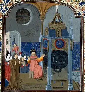The courtier and bibliophile Louis de Gruuthuse in front of an astronomical clock. Henri Suso, Horloge de Sapience, 1470-1480