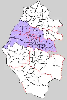 Asuwa-gun as established in 1889, with modern Fukui-shi in purple.