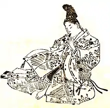 Atsumori playing the flute drawn by Kikuchi Yosai.
