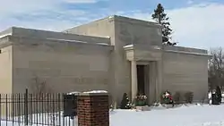 Auburn Community Mausoleum is a historic mausoleum located in Roselawn Cemetery at Auburn, DeKalb County, Indiana. It was built in 1917, and is a one-story, monolithic cubic limestone structure with simple Classical Revival style detail. It features a shallow porch with two Doric order columns. The mausoleum continued to be used for interments into the 1960s.[2]: 3