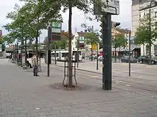The bus and tram stops in the station forecourt