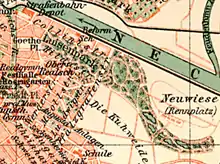 Starting in spring 2011, the green space was partially redesigned with a continuous central walkway. The old sycamore trees were felled in several construction phases and replaced by 228 young trees by summer 2014, after most of the more than one hundred year old sycamore trees were affected by the fungal disease Massaria and could no longer be preserved. Financing was provided by a three-year fundraising campaign.[4] The redesigned facility was inaugurated in mid-May 2015.