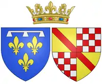 Her mother preferred the French match as it would strengthen ties with a powerful neighbour who prior to Auguste's birth, had ravaged Baden-Baden. Auguste however preferred the German match due to her roots.[1] Auguste, however gave into her mother and agreed to the match with Louis d'Orléans and there was a proxy ceremony held at the Schloss Rastatt before she was married on 13 July 1724. Louis d'Orléans was the grandson of Louis XIV of France through his illegitimate daughter Françoise Marie de Bourbon. Chosen for, among other reasons, her family's Catholicism, she brought a comparatively small dowry of 80,000 livres to the Orléans.