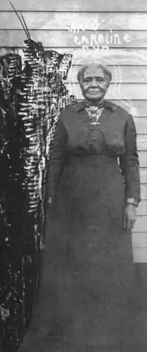 Caroline reportedly exhibited the ability to make accurate prophecies early on in her life.[2] At just 10 years old, she was a house girl helping to set the table for the Tracy family table for Thanksgiving dinner when she insisted that there weren't enough plates set at the table because "Mister Charley," William's brother, would be coming to dinner. This was dismissed by everyone, as Charley was believed to have been a causality of the Civil War just four years earlier. However, when Charley actually showed up to dinner later that day with his tale of being taken prisoner, they all had to admit there was something quite miraculous about Caroline.[2][3] This account creates further confusion about her birthdate because the war only lasted four years. If she was 10 years old in 1865, the last year the war ended, that would put her birth year in 1855.[3]