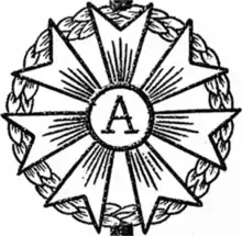 These ideals are symbolized by the society's emblem: a seven-pointed star surrounded by a wreath. The wreath represents a reward of merit, and the star stands for a single body (originally seven members) radiating light in the seven principal lines of college activity—Scientific, Athletic, Literary, Oratorical, Executive, Scholarship, and Religious.
