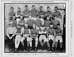 By the early 1880s, there may have been as many as 300 players in the Brisbane and Ipswich region, as contemporaneous newspaper records show that there were at least six active clubs (Brisbane, Excelsiors, Grammars, Wallaroos, Rovers and Athenians (Ipswich)), each of which had at least two teams ('senior' and 'junior' 20s). Matches were played at the Albert Ground, Kedron Park, Grammar School and Ipswich, with occasional matches at Queen's Park.[4][5]