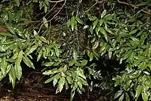 Austrocallerya australis, commonly known as native wisteria, blunt wisteria or Samson's sinew in Australia,[2] is a species of flowering plant in the family Fabaceae, native to north-eastern Australia, New Guinea and some Pacific Islands. It is a tall, woody climber with pinnate leaves, the leaflets oblong, elliptic or egg-shaped, and panicles of purple, pea-like flowers.
