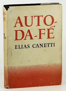 Auto da Fé (original title Die Blendung, "The Blinding") is a 1935 novel by Elias Canetti; the title of the English translation (by C. V. Wedgwood, Jonathan Cape, Ltd, 1946) refers to the burning of heretics by the Inquisition. The first American edition of Wedgewood's translation was titled The Tower of Babel (Alfred A. Knopf, 1947).