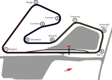 Autodromo del Levante is a 1.577 km (0.980 mi) motor racing circuit in Binetto, Apulia, Italy.[1] It was inaugurated on 10 June 1989.[2] The circuit has 9 turns. The circuit was mainly used for national events, such as Italian Formula Three Championship, Italian Superturismo Championship and Italian GT Championship.