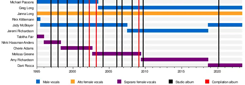 Jeremi Richardson joined the group in late 2007 to replace Jody McBrayer. Richardson, Greene, and Janna Long had attended the same college, Lee University in Cleveland, Tennessee. Richardson had sung with the group Voices of Liberty at Walt Disney World, and was recommended to Janna Long and Greene through mutual acquaintances.[12] On November 11, 2007, Melissa Greene announced at a show in Spring Arbor, Michigan, that it was the first concert with Richardson officially being a member of the group.