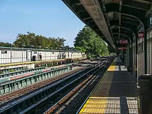 The Avenue M station (formerly South Greenfield,[3][4] Elm Avenue[5]), is a local station on the BMT Brighton Line of the New York City Subway. It is located in Midwood, Brooklyn, at Avenue M between East 15th and East 16th Streets. The station is served by the Q train at all times.[6]