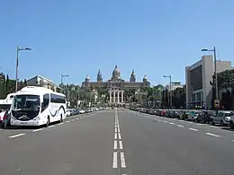 The twin Venetian Towers are a major landmark at the junction of this avenue with Plaça d'Espanya.