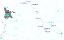 The basin covers much of the Western Australian wheatbelt[4] and extends beyond that in some areas near almost-always-dry Lake Moore in the northeast, water is received regularly from only the extreme western edge of the basin. Indeed, until an abnormally wet year in 1963 it was not realised that the northeastern part of the basin beyond Wongan Hills ever drained water into the river. Under present climatic conditions, it is almost impossible to produce runoff from anywhere outside the extreme west of the basin because the amount of rain required to fall before runoff would begin is as high or higher than the mean annual rainfall. The river has three main sub-catchments: catchments for the Mortlock, Yilgarn, and Lockhart rivers.
