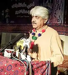 - ↑ "Orange-coloured evening: Sindhi poet, singer captivate audience". The Express Tribune. 2015-10-04. Retrieved 2020-07-19.