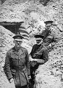 Hunter-Weston was a regular inspector of trenches and machine gun positions. He reconnoitred positions personally and on one occasion (1 November 1918) climbed into a fort on a rope ladder. Aged in his early fifties, he took great pride in his physical fitness and was proud of reducing more junior officers, including on one occasion a battalion commander in his mid-thirties, to breathlessness whilst out walking.[150] In his autobiography Bonham-Carter recorded that Hunter-Weston devoted too much time to minor details which should have been left to junior staff officers.[151] He thought him "a mountebank" and self-important, with the brain of an inexperienced boy and with a penchant for heroics.[152] He was also notorious for his interest in inspecting latrines.[153]