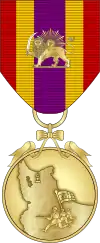 The Azarabadegan Medal was founded by Mohammad Reza Shah Pahlavi, the Shah of Iran, on 12 December 1946. In November 1945, the Azerbaijani Democratic Party formed a short-lived Soviet Union puppet state in Iranian Azerbaijan with Ja'far Pishevari as president. However, with the support of the United States and Britain, the Iranian army reentered Tabriz and dissolved the Azerbaijan People's Government. The Shah awarded the medal to the military soldiers involved in the battle.[1]