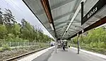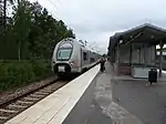 Bålsta is a railway station located in Bålsta in Håbo municipality, Uppsala County, Sweden. It is located 45.3 km from Stockholm Central Station on the Mälaren Line.[2] The station serves long-distance and regional SJ trains, and is also the north-west terminus for Stockholm's commuter trains, despite being located just outside of Stockholm County.
