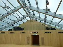 Sir Y.K. Pao Studio Today, Sir Y.K. Pao Studio, sponsored by Dr Helmut Sohmen and Professor Anna Pao Sohmen, serves as a spectacular multi-function room on the second floor of Béthanie. The room was originally a pitched roof with tiles. Due to the limited space, it was later reconstructed with a flat roof. It was not until the restoration project when the distinctive pitch roof was brought back into the design, using double-glazed panels of glass. The studio has a floor area of 21 square metres (230 sq ft) is equipped with wall mirrors, dance bars, glazed windows and other technical facilities and non-permanent seating.[15]