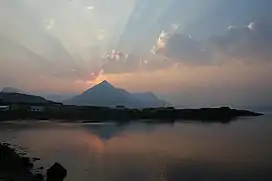 Búlandstindur (Icelandic pronunciation: [ˈpuːˌlan(t)sˌtʰɪntʏr̥] ) is a mountain in Eastern Iceland between the bays Berufjörður and Hamarsfjörður. Mt. Búlandstindur is 1,069 metres (3,507 ft) above sea level. It is a pyramid-shaped stack of basaltic strata. The villages around this mountain are famous for fishing.[1]