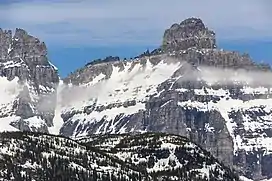 Like other mountains in Glacier National Park, it is composed of sedimentary rock laid down during the Precambrian to Jurassic periods. Formed in shallow seas, this sedimentary rock was initially uplifted beginning 170 million years ago when the Lewis Overthrust fault pushed an enormous slab of precambrian rocks 3 mi (4.8 km) thick, 50 miles (80 km) wide and 160 miles (260 km) long over younger rock of the cretaceous period.[4]