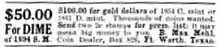 Mehl's first published words in The Numismatist appeared in August 1903. Likely part of a letter to Secretary Heath endorsing the magazine, they read, "I am indeed more than pleased with The Numismatist and think it is the best publication of its kind."[1] In October 1903, that journal reported a change of address for Mehl to Box 24, Alvord, Texas. In 1903, he joined the British Numismatic Society.[1] Mehl's first mail-order advertisement appeared in the December 1903 issue of The Numismatist, selling 33 U.S. coins on a highest-bidder basis. Q. David Bowers, in a 1999 article on Mehl, found it logical that Mehl would focus on the mail order business given Fort Worth's distance from numismatic centers such as New York and Philadelphia—there would be few local collectors to patronize a coin shop in "Cow Town", as Fort Worth was known.[4] By this time Mehl had returned to using the address on Main Street in Fort Worth. The sale was likely not a success, as most of the coins were listed on a circular Mehl sent by mail in January 1904, but the following month, he placed his first full-page advertisement in The Numismatist. According to numismatic author John N. Lupia III, "Apparently he was a smashing success from 1904 on."[1] Mehl was aided in becoming a major coin dealer by C.W. Cowell, a Coloradan who was selling his collection, who sent many rare pieces to Mehl on consignment, allowing him to offer rarities that otherwise would have been beyond his means.[8]