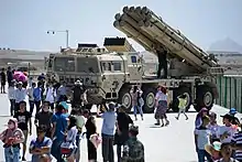 The BM-30 Smerch (Russian: Смерч, "tornado", "whirlwind"), 9K58 Smerch or 9A52-2 Smerch-M is a heavy self-propelled 300 mm multiple rocket launcher designed in the Soviet Union to fire a full load of 12 solid-fuelled projectiles. The system is intended to defeat personnel, armored, and soft targets in concentration areas, artillery batteries, command posts and ammunition depots. It was designed in the early 1980s and entered service in the Soviet Army in 1989.[4] When first observed by the West in 1983, it received the code MRL 280mm M1983. It continues in use by Russia; a program to replace it with the 9A52-4 Tornado began in 2018.[5]