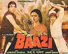 Baazi is a 1984 Indian Hindi-language action film directed by Raj N. Sippy.[2] The film stars Dharmendra, Mithun Chakraborty, Rekha, Ranjeeta, Shakti Kapoor, Madan Puri and Mac Mohan. The film was delayed for 3-4 years. Upon release, the film received mixed reviews and was an average grosser.