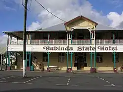 The Queensland Government constructed the Babinda State Hotel in the town of Babinda between 1916 and 1917. It was the only hotel at the time constructed and operated by the Queensland Government under the Labor government's State Enterprises scheme.[1]