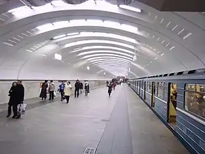 Babushkinskaya (Russian: Бабушкинская) is a Moscow Metro station in the Babushkinsky District, North-Eastern Administrative Okrug, Moscow. It was opened on September 29, 1978 as a part of the VDNKh – Medvedkovo sector. It is on the Kaluzhsko-Rizhskaya Line, between Sviblovo and Medvedkovo stations after the commissioning of which there were 107 stations in the Moscow Metro.