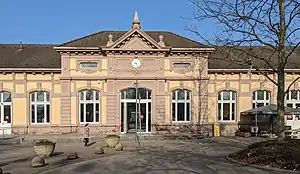 In 1904, the station received a new station building, which continues to serve as such.[5] In 1908, it was renamed Baden-Oos.