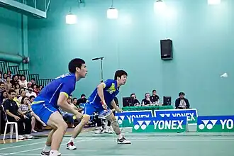 ![]() Two Chinese pairs compete in the mixed doubles gold medal match of the 2012 Olympics | |
