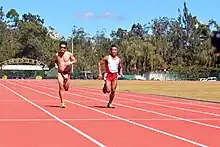![]() The sports complex's track and field track and grandstand in 2018. | |