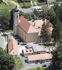 The establishment of the monastery is connected to the activities of a Thuringian nobleman, Gunther.[1] He entered the Niederaltaich Abbey in order to do penance for his earlier sins, but later became a hermit in the woodlands along the borders between Bavaria and Bohemia.[1] He was related to Gisela of Bavaria, the queen of King Stephen I of Hungary,[1] and often visited them in Hungary.[2] Gunther even lived as hermit in the forests of the Bakony Hills near a royal manor at Veszprém around 1018.[3][1] Upon his initiative, another saintly man, the Venetian Gerard  who was appointed to educate King Stephen's son, Emeric  built a chapel at the foot of a nearby hill[4] where he spent seven years of his life as a hermit.[3] Gunther persuaded, in 1037, King Stephen to erect a new chapel dedicated to Saint Maurice, transform his royal manor into a monastery and grant his nearby estates to it.[3][4]