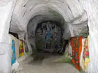 Bakota has an ancient Orthodox cave monastery (48.585647°N, 26.999702°E), which includes ancient frescoes and paintings dating back to the 12th-14th centuries,[1] as well as preserved remains of monks.[3] Local legend has it that the Bakota Cave Monastery was founded by Saint Anthony of Kiev, who also founded the historic Kiev Pechersk Lavra in 1051, now in Kyiv, Ukraine.[4] A Paleolithic archaeological site is also located near the village.[1] Bakota is currently part of the National Environmental Park "Podilski Tovtry".