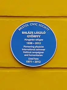 Commemorative Blue Plaque outside the house where Balazs L Gyorffy lived in Bristol