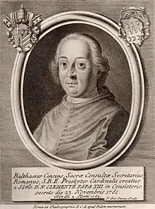 1. 1 2 3 4 Miranda, Salvador. "CENCI, iuniore, Baldassare (1710-1763)". The Cardinals of the Holy Roman Church. Florida International University. OCLC 53276621. Retrieved December 29, 2019.