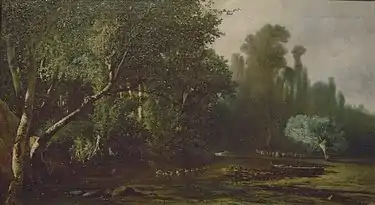 From 1870 to 1882, he lived in Rome on a pension, granted by the First Republic, while he studied at the "Academia Española de Bellas Artes de Roma", a branch of the Real Academia de Bellas Artes de San Fernando. At this time, he came under the influence of Marià Fortuny, but preserved his own style; especially his use of color.[2]