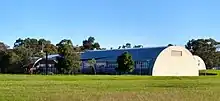 Former Migrant Hostel Kitchen/Dining Room, then a university science centre and currently conserved, refurbished and used as a child care facility. The building has three parts: a single storey weatherboard clad kitchen area with clerestory ventilation; a 100 ft × 41 ft (30 m × 12 m) Quonset hut with curved corrugated steel roof/walls; a gable roofed corrugated steel clad extension