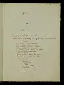 ![]() The manuscript of Balladyna given by Słowacki to friend Józef Reitenheim in 1834 | |