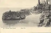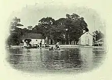 After completing his purchase of Ballast, George W. Gardner sold to his friends, including Henry Corning, Will Claflin and Civil War General James Barnett, undivided interests with the right to build a cottage. The island then became a cooperative association of wealthy families. During the late 19th and early 20th centuries, Ballast Island flourished. A large hotel and dining hall were constructed high on the cliffs of the north side of the island. A windmill supplied water and carbide lanterns supplied light. During this time many cottages were built around the east and west shores along with the Gardner Log Cabin.[5] Over the years the Gardner family has lived in this log house, including George W., his son George Henry, Kenneth and Constance Gardner, and currently the daughter of Ken and Constance. During the 1890-early 1900 time span the southeast corner of Ballast facing Buckeye Point on South Bass was adorned by a boat house. This boat house served as the headquarters for the Longworth Canoe club. The canoe club was named after Nicholas Longworth, who was the father-in-law of Theodore Roosevelts's daughter, Alice. Presidents Theodore Roosevelt, William McKinley, James Garfield and Grover Cleveland all have visited Ballast.