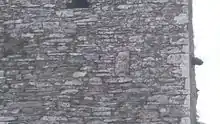 The castle features several defensive features such as bartizans, which are overhanging turrets that project from the walls of medieval fortifications and are often equipped with arrow slits. In addition, there is evidence that the castle once had a machicolation (an opening through which boiling liquids and stones were thrown at enemies) and, unusually, a portcullis.[3] On the eastern side of the castle, about halfway up, there is also a Sheela Na Gig, a figurative sculpture of a naked woman displaying an exaggerated vulva. These sculptures are found throughout Europe, especially in Ireland, Great Britain, France and Spain, on cathedrals, castles and other buildings. Scholars do not agree on the origin of these figures. A popular theory is that the sculptures were used to ward off death, evil and demons. Other theories suggest that the figures represent a fertility goddess or pre-Christian mother. However, their origin and meaning remain uncertain.